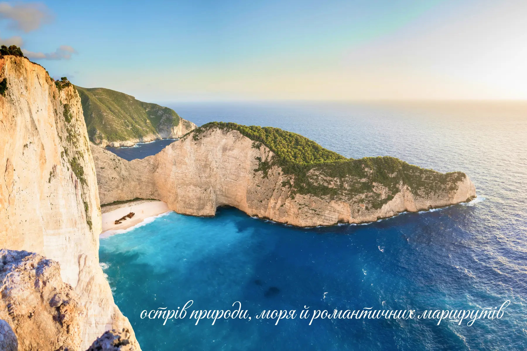Закінтос часто обирають для відпочинку в Греції, коли хочеться максимальної «вау-природи» та романтичних краєвидів, які найкраще відкриваються з моря або з оглядових майданчиків уздовж узбережжя. Одна з найвідоміших візитівок острова – бухта Наваніо (Shipwreck Beach), яку зазвичай показують під час морських прогулянок разом із Блакитними печерами, де вода на сонці набуває насичених відтінків синього.