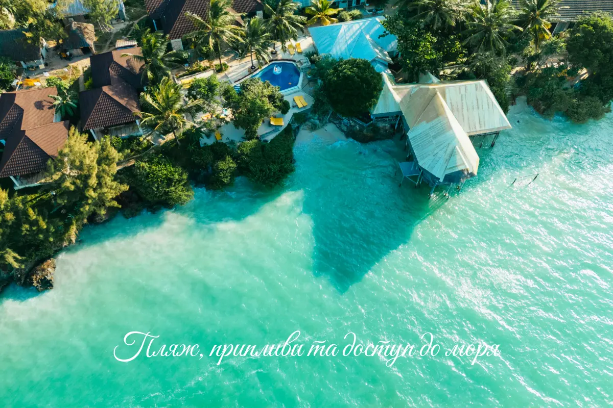 При плануванні відпочинку на Занзібарі важливо враховувати не лише красу пляжу, а й природні особливості узбережжя. Острів відомий своїми значними коливаннями припливів, що безпосередньо впливає на можливість купатися та насолоджуватися морем. Під час відпливу деякі ділянки можуть стати малопридатними для плавання, а коралові рифи виявляються на поверхні, що може обмежувати доступ до води.